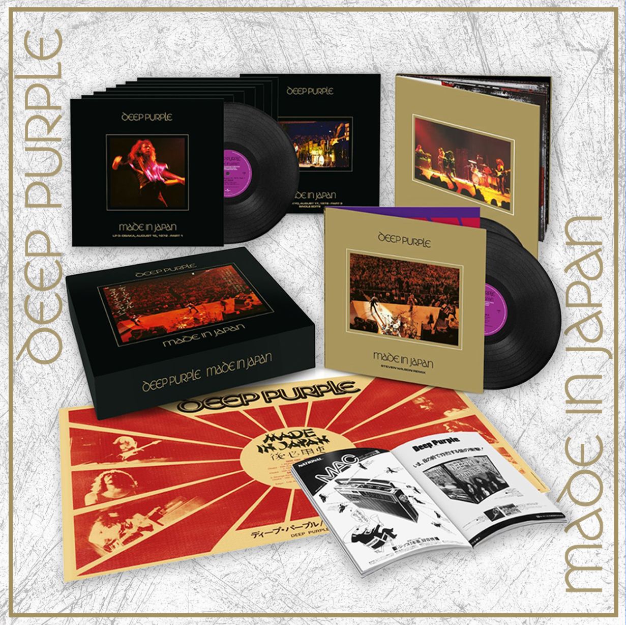 Deep Purple announces the definitive version of one of rock’s greatest live albums featuring the hits “Smoke On The Water,” “Highway Star,” and “Child In Time,” coming August 15! Available as a 10LP super deluxe vinyl boxed set and a 5CD + Blu-ray, the collection includes new 2025 stereo mixes by Steven Wilson, plus all 3 legendary 1972 Japan shows fully remixed by Richard Digby Smith. MADE IN JAPAN also includes rare single edits, and the Blu-ray features the new Dolby Atmos mix. The classic original album, remixed by Steven Wilson, will also be available digitally and as a 2LP (released October 3rd in the US, Canada, and Japan).